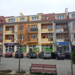 Zdjęcia kolejnej skończonej realizacji – remontu, docieplenia i kolorystyki budynku mieszkalno- usługowego na Placu Wolności w miejscowości Biskupiec