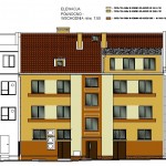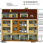 Porównawcze zestawienie widoku od strony ul. Syreny przedstawiającego formę wizualną zawartą w projekcie budynku wielorodzinnego z jednym z ostatnio zamieszczonych zdjęć realizacji budynku , w podobnym ujęciu tej fasady.