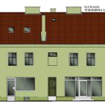 - Wygląd elewacji z łącznikiem