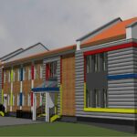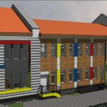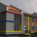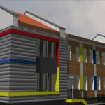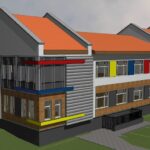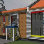 Propozycja formy wizualnej nowoprojektowanego budynku mieszkalnego jednorodzinnego z dwoma lokalami mieszkalnymi w jednej bryle.