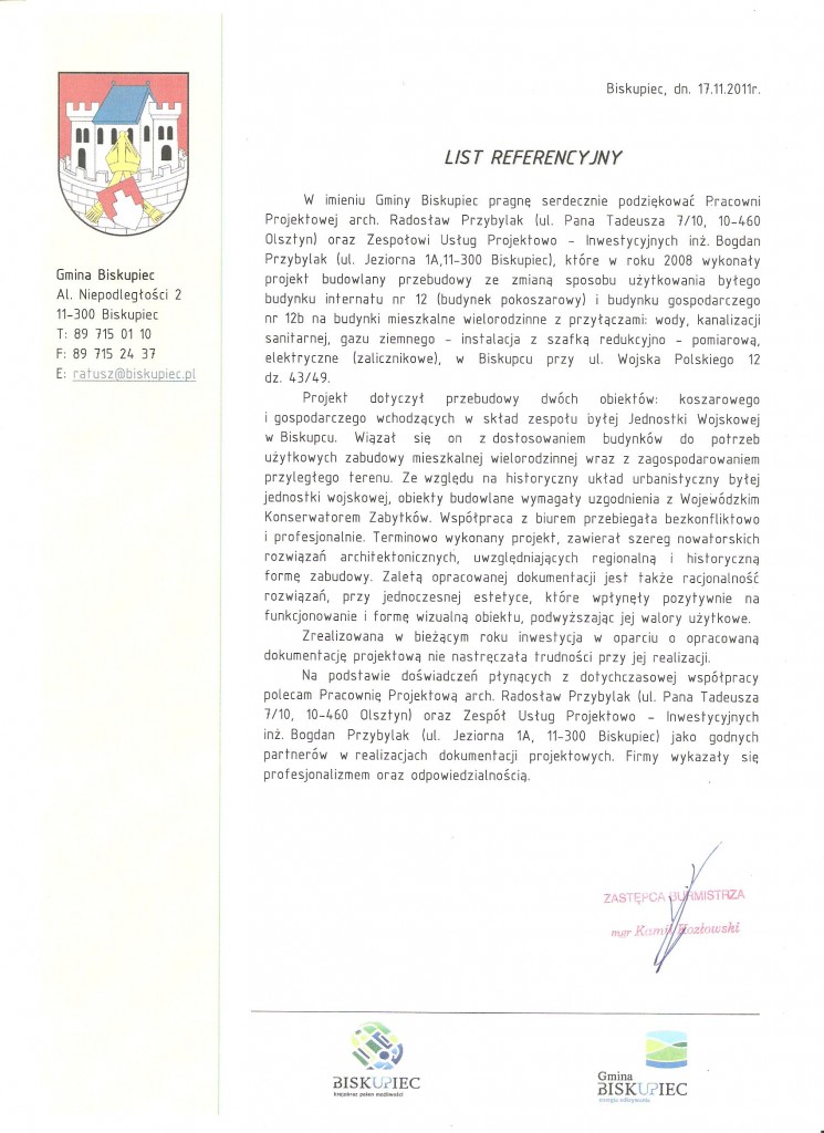 rekomendacja – U,M,Biskupiec J.W.